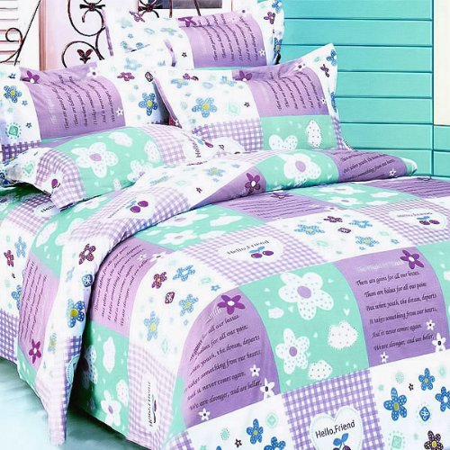 Five-piece set for Twin size (consisting of a pillow sham, a fitted sheet, a duvet cover, a comforter & a pillow)