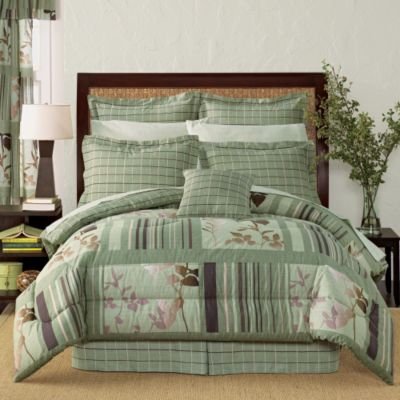 Exclusively Ours! Update your bedroom with a trendy new look. Cotton/polyester, polyester fill Machine wash/dry; spot clean pillows Imported Bed-in-a-Bag Includes : comforter, bed skirt, two standard shams (twin has one; king and California king have two king shams), one flat sheet, one fitted sheet, two pillowcases (twin has one; king and California king have two king pillowcases). Coordinating Accessories : European sham, rod pocket curtains, tailored/pouf valance and toss pillow.