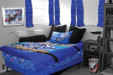 This reversible MX Bed set will have you feeling like your trackside every night. Add in the array of accessories, like the MX Trashcans, rider pennants, pillows and much more, and youll be geared up all year long with your very own factory sponsored bedroom. Matching bedroom curtains are also available separately. Set features 250 thread count, soft poly/cotton blend fabric and includes reversible comforter cover with different design on opposite side, fitted sheet, flat sheet and pillowcase.